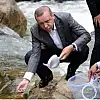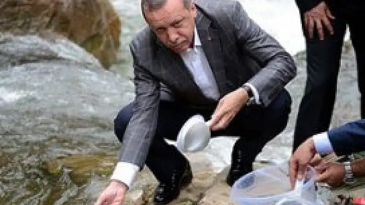 Başbakan Recep Tayyip Erdoğan, Rize'de, Ayder Yaylası'ndaki Fırtına Deresi'ne kırmızı benekli alabalık yavrusu bıraktı.
