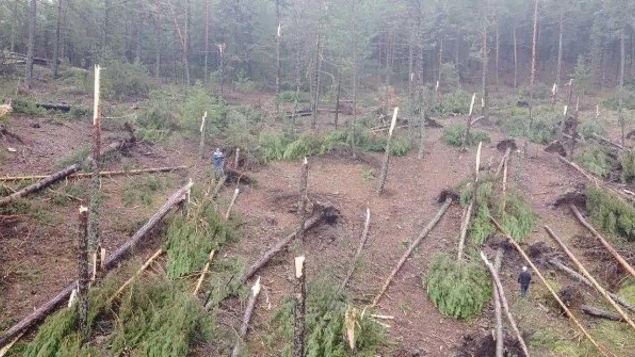 Fırtına ormanda yüzlerce ağaç devrildi