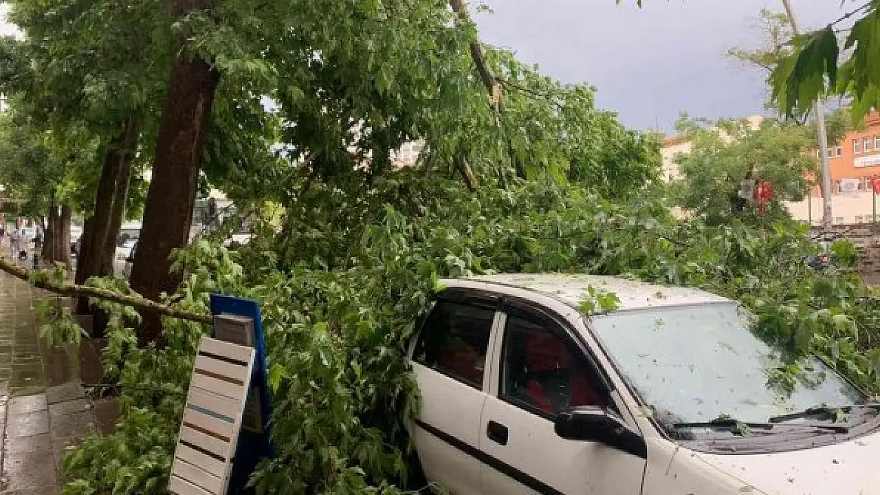 Ankara'da şiddetli fırtınanın devirdiği ağaç park halinde duran iki otomobilin üzerine düştü. Olayda can kaybı ve yaralanma yaşanmazken her iki araçta da maddi hasar meydana geldi.