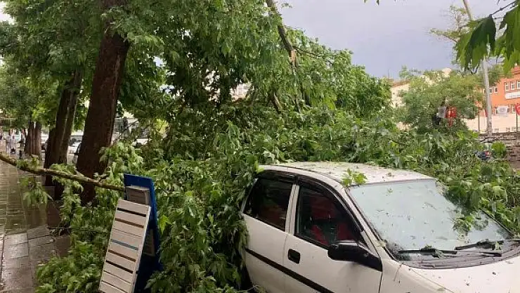 Ankara'da şiddetli fırtınanın devirdiği ağaç park halinde duran iki otomobilin üzerine düştü.