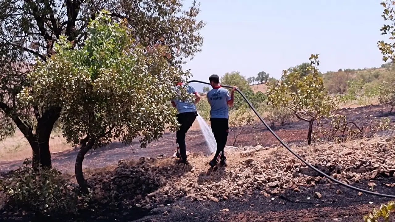 Siirt'in Tillo ilçesinde bir fıstık bahçesinde çıkan yangında 50 ağaç ile 5 dönüm alan zarar gördü.