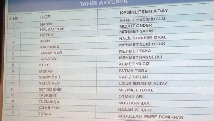 Flaş Gelişme - AK Parti'nin Konya İlçe Belediye Başkan adaylarını açıkladı
