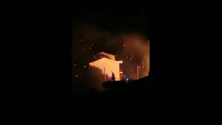 İZMİR'in Foça ilçesinde, etkili olan şiddetli rüzgar nedeniyle elektrik tellerinin birbirine temas ederek kısa devre yapması sonucu ilçe merkezindeki trafo patladı.