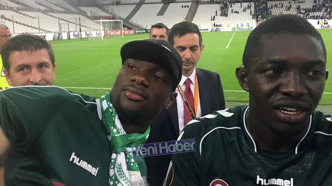 Atiker Konyaspor'un UEFA Avrupa Ligi I Grubu ilk maçında Marsilya'ya 1-0 mağlup olmasının ardından yeşil beyazlı futbolcu Moryke Fofana, tribünde bulunan kardeşi Yusuf'un yanına gitti