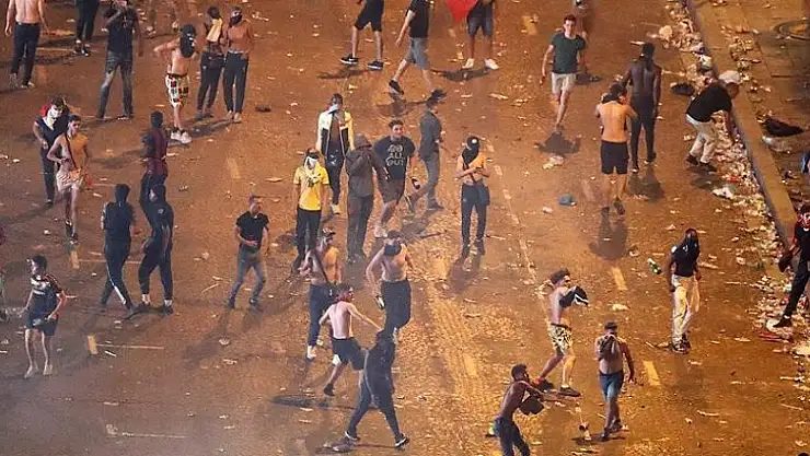 À Frouard (Est), trois enfants âgés de trois à six ans ont été blessés après avoir été fauchés par un motard, une personne a été gravement blessée sur l’avenue des Champs-Elysées à Paris et plusieurs heurts ont éclaté entre les supporters et policiers qui ont riposté au gaz lacrymogène dans les villes de Strasbourg (Est) et Rouen (Nord).