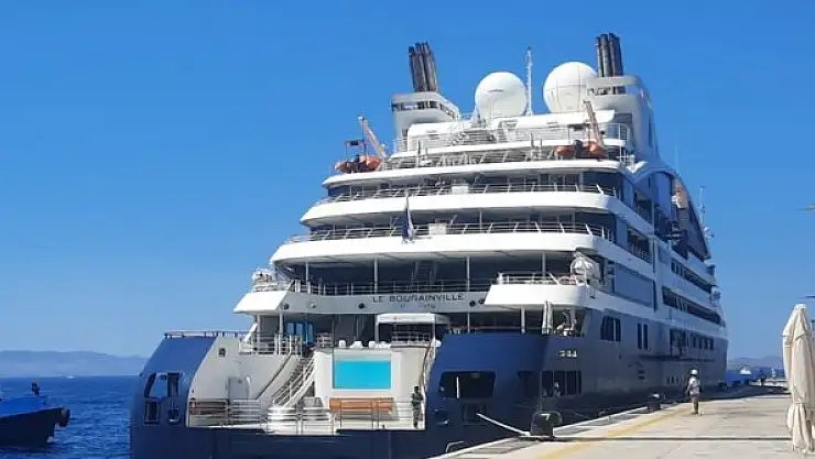 Kuşadası Limanı'ndan yola çıkarak Bodrum Cruise Port İskelesi'ne yanaşan 120 metrelik "Le Bougainville"de çoğunluğu Fransız 71 yolcu ile 119 personel bulunuyor.