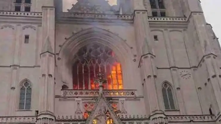 Fransa'nın başkenti Paris'te Nantes Katedrali'nde yangın çıktı. Sebebi bilinmemekle birlikte, katedralin kısa sürede alevler içinde kaldığı görüldü