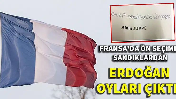 Fransa'da gelecek yıl yapılacak cumhurbaşkanı seçiminde merkez sağdaki Cumhuriyetçiler Partisinin adayının belirlendiği ön seçimin ilk turunda sandıklarda geçersiz sayılan oyların bir kısmının Cumhurbaşkanı Recep Tayyip Erdoğan'a verildiği ortaya çıktı.