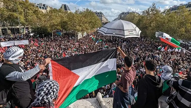 İsrail ordusunun Gazze'de yürüttüğü katliamlara destek vererek bebek katillerinin arkasında duran Fransa Cumhurbaşkanı Emmanuel Macron, ülkesinde Filistin'e destek eylemlerini engellemeye çalışmasına rağmen on binlerin sokağa inmesiyle şoka uğradı.