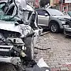 Freni boşalan kamyon park halindeki 3 aracı adeta biçti