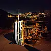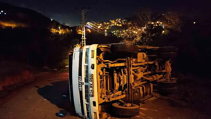Zonguldak'ın Ereğli ilçesinde freni boşalan kamyon sürücüsünün direksiyon hakimiyetini kaybetmesi sonucu devrildi.