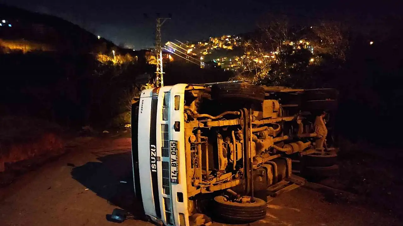 Kaza gece saatlerinde Güldere Mahallesi Yumurtaş Sokak üzerinde meydana geldi. Edinilen bilgiye göre Emin E. İdaresindeki 14 BV 055 plakalı kamyonetin rampa yukarı çıktığı sırada benzini bitti. Bu sırada freni boşalarak geri doğru su kanalına giden kamyon devrildi. Kazada aracın sürücüsü ve yanında bulunan iki kişi yara almadan kurtuldu. Kaza nedeniyle trafiğe kapanan yol kamyonetin olay yerine gelen vinç yardımı ile kaldırılması ile yeniden ulaşıma açıldı.