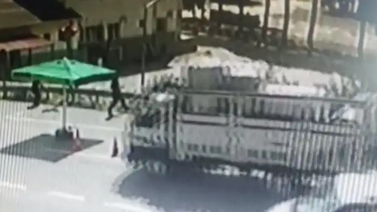 MUĞLA'nın Marmaris ilçesinde freni boşalan kamyonet yol kontrol noktasına daldı. Güneş şemsiyesinin altında bekleyen 2 polis memuru son anda kaçarak kurtulurken, o anlar mobese kameralarına yansıdı.