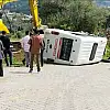 Freni boşalan minibüs yol kenarına devrildi