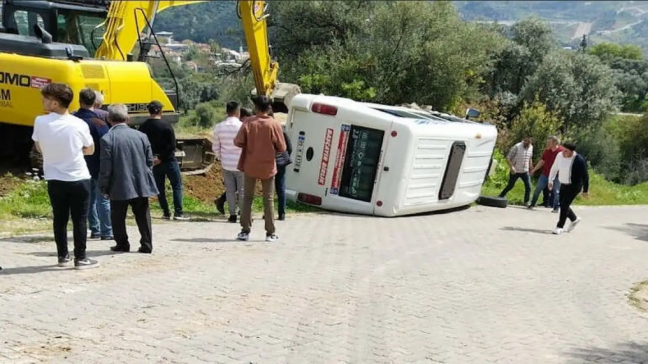 Aydın'ın Köşk ilçesinde freni boşalan ve eğimli yolda hız kazanan minibüs yol kenarında bulunan yükseltiye çarparak devrildi.