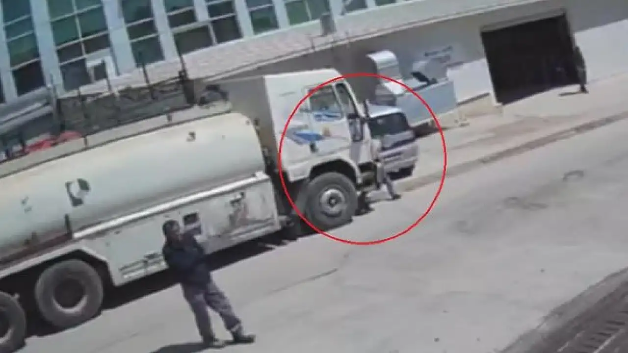 Ankara'da, park halindeyken freni boşalıp hareket eden tankerin altında kalan Ali Kılıç (39) hayatını kaybetti. Kaza, güvenlik kamerasına yansıdı.
