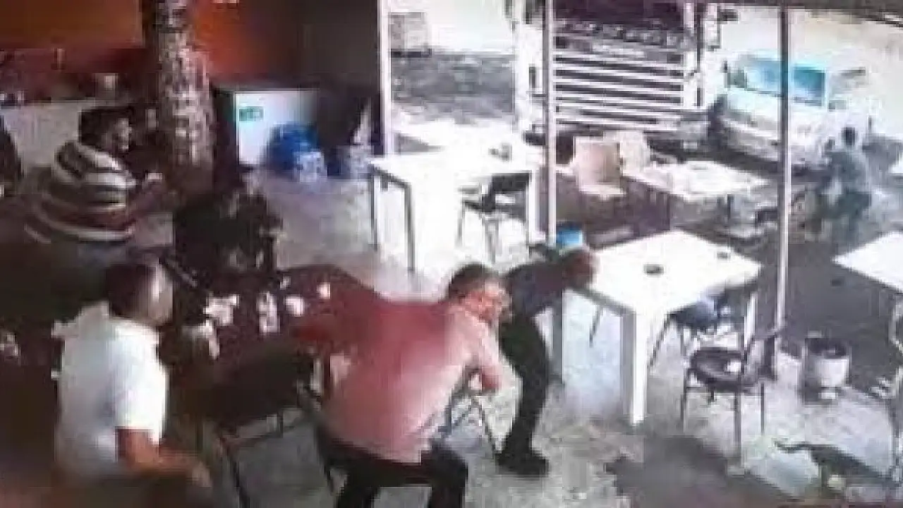 Bu sırada lokantanın önündeki masada oturan biri çocuk 3 kişi tırın altında kalmaktan saniyelerle kurtuldu.