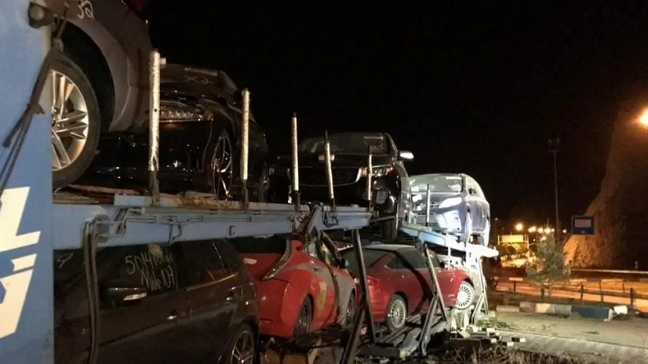 Erzurum'un Tortum ilçesinde araç yüklü bir tır, freni patlaması sonucu 3 araca çarptı. Araçlara çarparak durabilen tırda yüklü olan araçlar ise kaza sonucu yola savruldu.