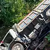 yokuş aşağı seyir halinde olan kamyon, freni tutmayınca dereye uçtu.