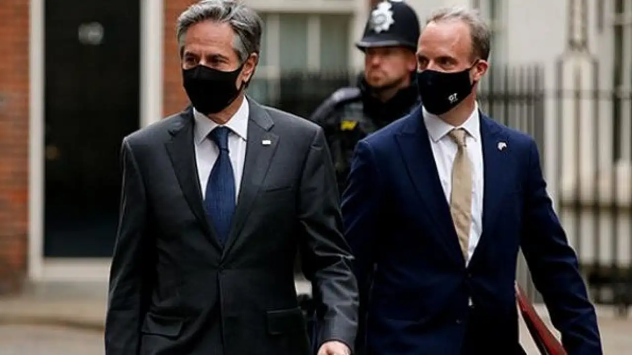 Toplantı öncesi ABD Dışişleri Bakanı Antony Blinken ve İngiltere Dışişleri Bakanı Dominic Raab Downing Street'te basın toplantısı düzenlediler.