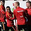 Antrenmanda önce Semih Kaya'nın 26. yaş günü, pasta kesilerek kutlandı.