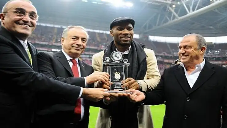 Spor Toto Süper Lig’in 27. haftasında Türk Telekom Stadyumu’ndaki Galatasaray - Evkur Yeni Malatyaspor müsabakası öncesinde sarı-kırmızılıların eski efsane futbolcusu Didier Drogba’ya plaket verildi. Drogba’ya plaketi Galatasaray Başkanı Mustafa Cengiz, İkinci Başkan Abdurrahim Albayrak ile Teknik Direktör Fatih Terim takdim etti.