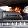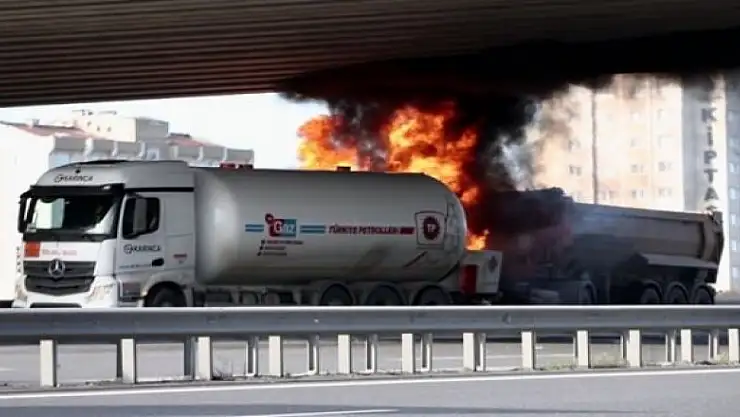 İstanbul'da Kuzey Marmara Otoyolu bağlantı yolunda hafriyat kamyonu, gaz tankerine çarptı. Çarpışmanın etkisiyle kamyon alev aldı, tankerde gaz kaçağı meydana geldi. Yol, olası bir patlamaya karşı trafiğe kapatıldı.