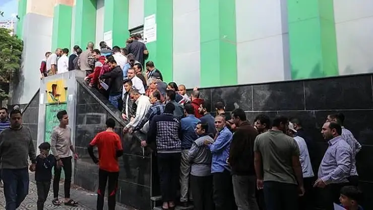 Des centaines de Palestiniens se sont rassemblés devant les agences postales à travers la Bande de Gaza pour recevoir un troisième versement de la subvention.