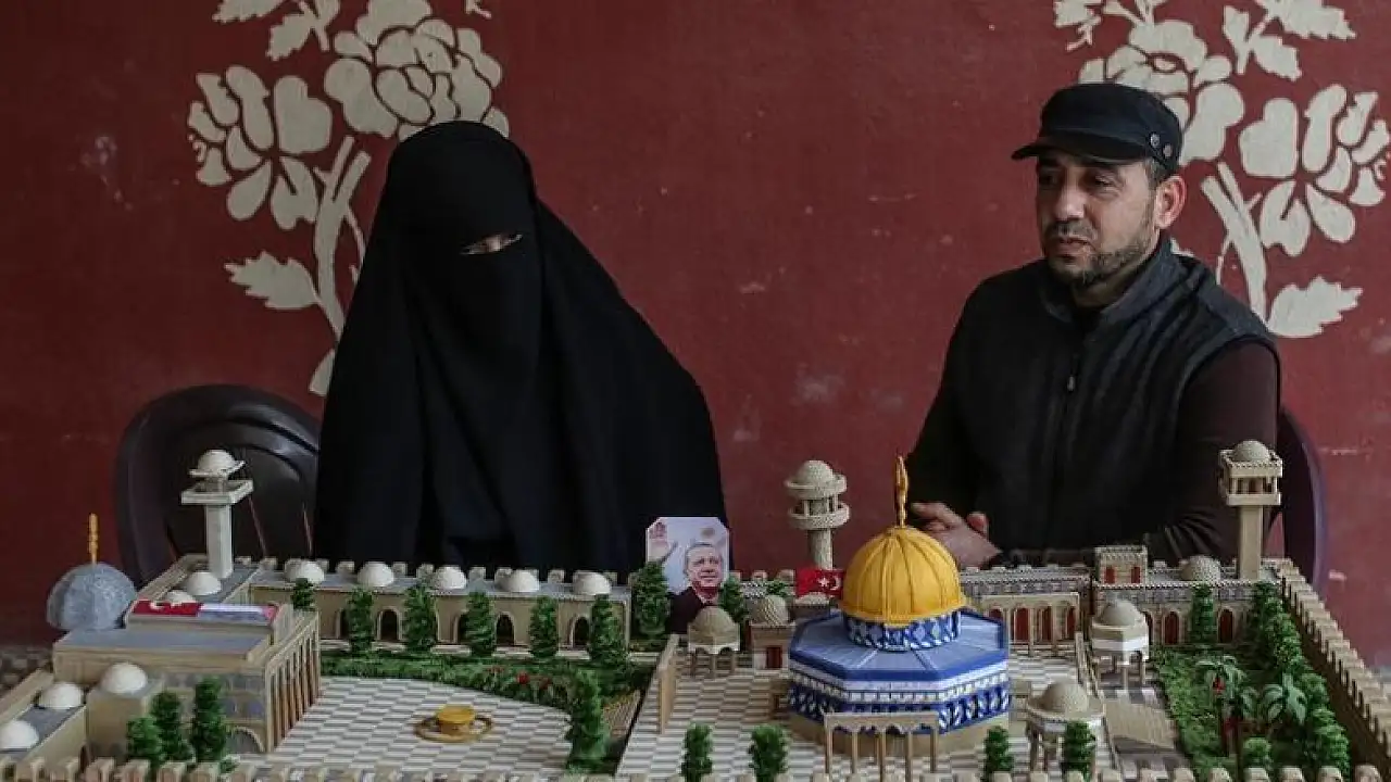 Le Gazaoui Houssam Farhad (45) et son épouse, Samira, ont réalisé une maquette de la mosquée Al Aqsa afin de l'offrir au président de la République Turque, Recep Tayyip Erdogan, pour saluer son engagement et l’attitude honorable dont il a fait preuve à l'égard de la Palestine.