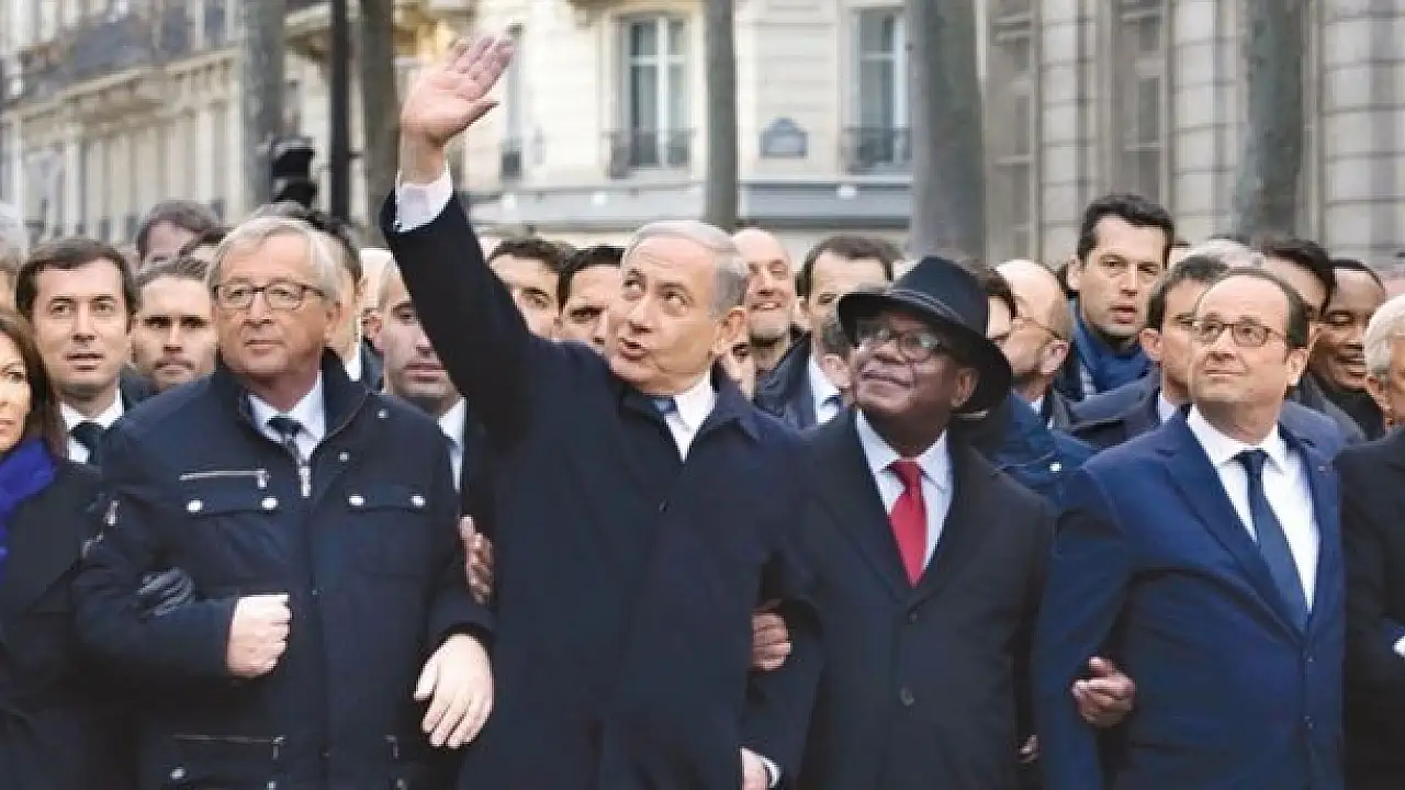 Charlie Hebdo dergisine düzenlenen saldırıyı “Yahudi göçü” için fırsata dönüştürmeye çalışan İsrail Başbakanı Benyamin Netanyahu, Paris yürüyüşünü şova çevirdi ve Fransız lider Hollande ile “yakın dayanışma” içinde poz verdi.