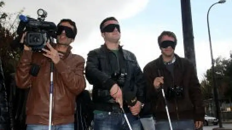 Konya'da 3 Aralık Dünya Engelliler Günü kapsamında yapılan etkinlikte, bazı gazeteciler gözleri bağlanıp beyaz bastonla otobüse bindirilerek, engellilerin yaşadığı sıkıntılar anlatılmaya çalışıldı.