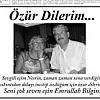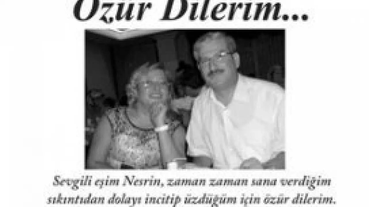 Konya’da yaşayan 51 yaşındaki Emrullah Bilgin, eşine, “Zaman zaman sana verdiğim sıkıntıdan dolayı ve seni incitip üzdüğüm için çok özür dilerim” diye seslenerek, “Onu çok seviyorum. Dünyalara değişmem” dedi. Emrullah Bilgin, 21 yıl önce evlendiği Nesrin Bilgin ile ailevi nedenlerden dolayı tartıştı. Tartışma sonucunda eşinin çok kırılıp incindiğini gören Emrullah Bilgin, eşinin gönlünü almak için, yerel yayımlanan Anadolu Telgraf Gazetesi'ne yarım sayfa ilan verdi. Emrullah Bilgin’in ve eşinin fotoğrafının da yer aldığı ilana, “Özür dilerim... Sevgili eşim Nesrin, zaman zaman sana verdiğim sıkıntıdan dolayı incitip üzdüğüm için özür dilerim. Seni çok seven eşin Emrullah Bilgin” diye yazdırdı. İlan sonrası Emrullah Bilgin ile eşinin barışıp barışmadığı ise merak konusu oldu.