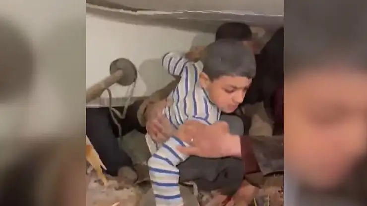 Gaziantep'in Nizip ilçesinde yıkılan bir binanın enkazından 4 kişinin sağ çıkarılması cep telefonu kamerasına yansıdı.