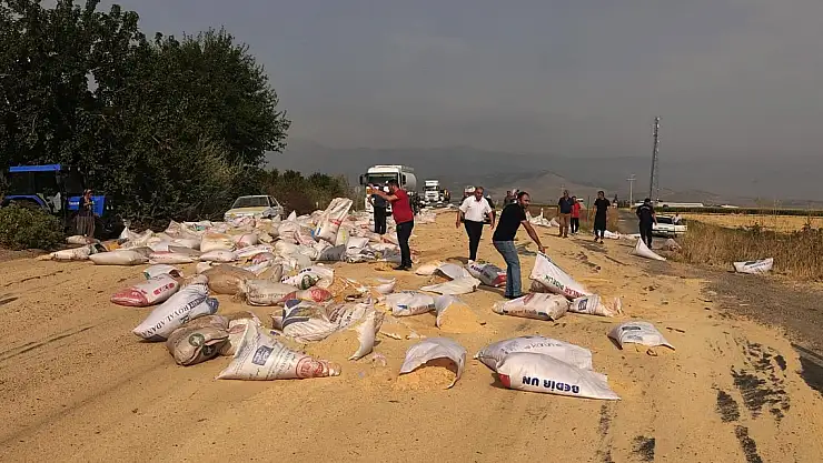 Olay, sabah saatlerinde Nurdağı-Gaziantep yolunun 16'ncı kilometresinde meydana geldi. İsmail Özdemir (53) yönetimindeki 27 R 8744 plakalı TIR'ın dorsesinden hayvan yemi dolu çuvallar yola savruldu. Arkadan gelen sürücüler zor anlar yaşadığı sırada uyarılan TIR sürücüsü, aracı yol kenarına çekti. Yola saçılan 5 ton hayvan yemi çevredekilerin yardımıyla toplanmaya başlandı. İhbarla bölgeye gelen jandarma ekipleri, olası kazayı önlemek için yolu ulaşıma kapattı. Çuvalların kenara alınıp temizlenmesinin ardından yol, yeniden açıldı. TIR'ın dorsesinden 5 ton yemin yola savrulma anı ise iş yerinin güvenlik kamerasınca saniye saniye kaydedildi.