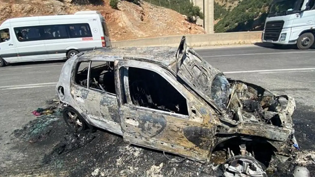 Gaziantep'te bariyere çarpıp alev alan otomobildeki 2 kişi yaralandı