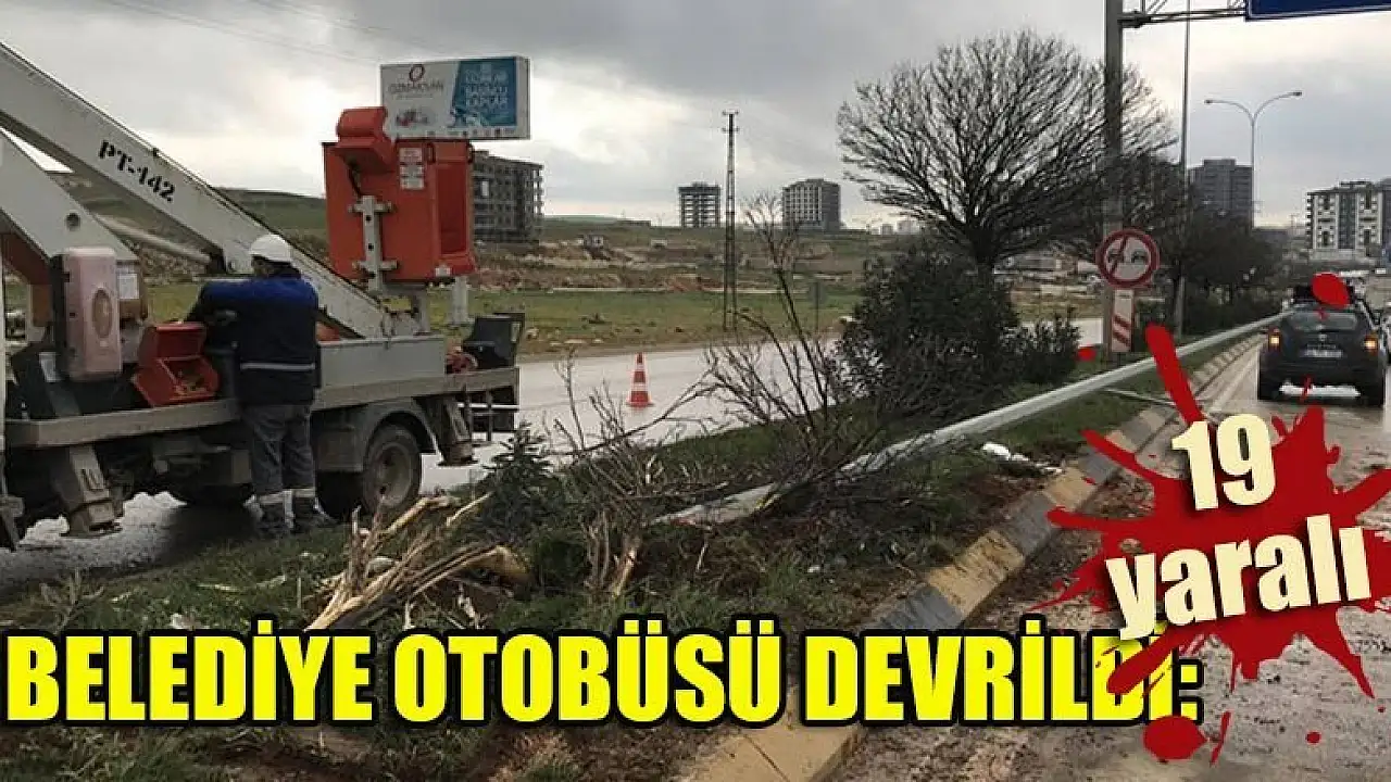 Gaziantep'te Büyükşehir Belediyesine ait otobüsün devrilmesi sonucu 19 kişi yaralandı.