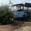 Ağaçlara çarparak durabilen yolcu minibüsünün yandığını gören vatandaşlar, durumu itfaiye ekiplerine bildirdi.