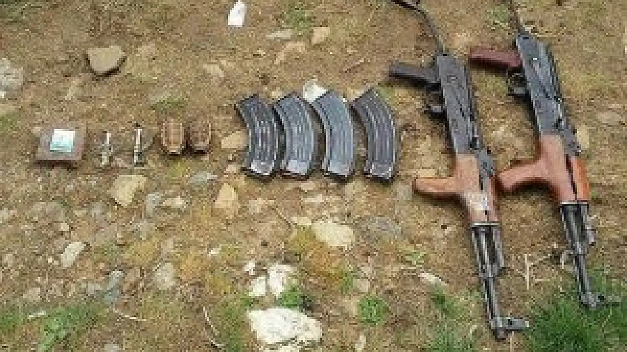 Bölgede yapılan kazıda, poşet içinde toprağa gömülmüş ikişer Kalaşnikof, savunma tipi el bombası ve el bombası ateşleme fünyesi, 4 şarjör ile cüzdan ele geçirildi.