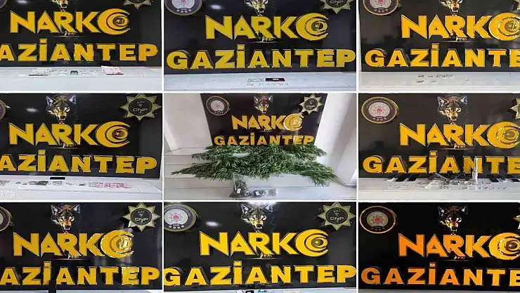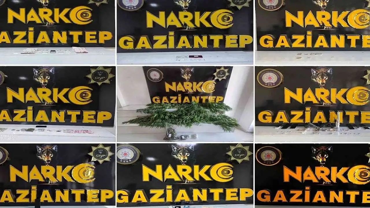 Gaziantep'te Narkotik Suçlarla Mücadele çerçevesinde gerçekleştirilen operasyonlarda, 578 gram esrar, 559 gram sentetik kannabinoid (bonzai), 495 gram metamfetamin (ateş-buz), 199 gram eroin, 72 kök kenevir bitkisi