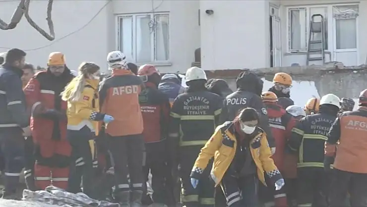 Gaziantep'te yıkılan binanın enkazından 34 saat sonra bir kadın yaralı kurtarıldı