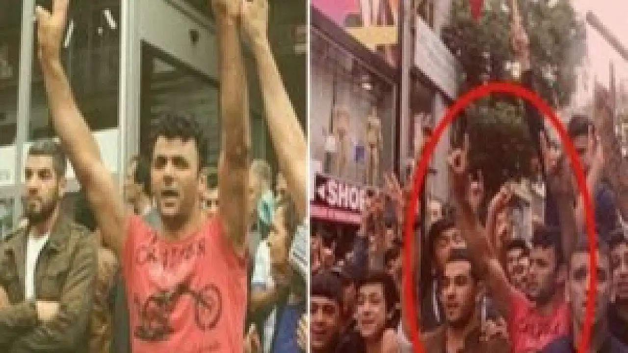 Gaziosmanpaşa'da ayrı tarihlerde çekilen iki fotoğraf karesi kafaları karıştırdı. HDP'li grup arasında yer alan ve zafer işareti yapan pempe tşörtlü bir gösterici, farklı bir fotoğraf karesinde ise bozkurt işareti yapan grupla yürüyor.