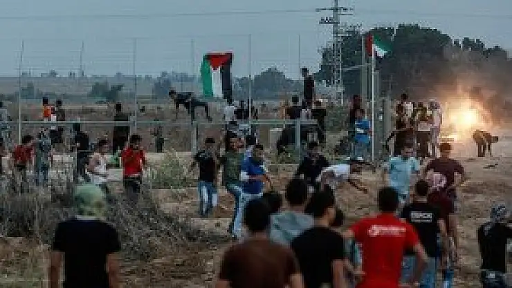 İsrail güçleri, Gazze sınırındaki gösterilere, gerçek ve plastik merminin yanı sıra göz yaşartıcı gaz kullanarak müdahale etti. İsrail askerlerinin gösteriye müdahalesine Filistinliler taş atarak karşılık verdi.