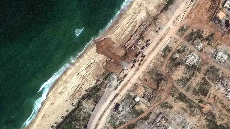 Deniz yoluyla yardım ulaştırılması için ABD'nin İsrail ablukası altındaki Gazze Şeridi'nin kıyısına inşa etmeye başladığı limana yönelik çalışmalar uzaydan görüntülendi.