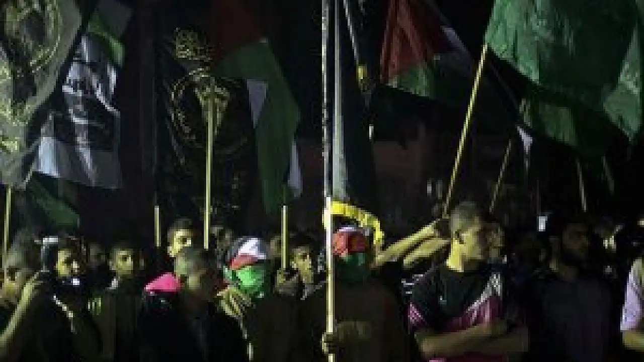 Hamas ve İslami Cihad tarafından düzenlenen gösteride, Gazze'nin farklı bölgelerinden gelen gruplar, kentin doğusundaki Şucaiyye Mahallesi'nde bir araya geldi. Gösteriye katılan Filistinliler, Batı Şeria ile Gazze'nin birlik içerisinde olduğunu vurgulayan ve Kudüs'ün önemini ifade eden dövizler taşıdı.