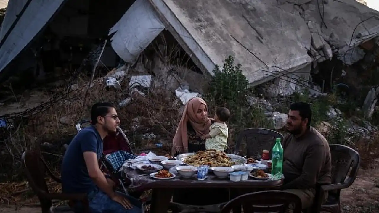 Gazze'de enkazın ortasında iftar
