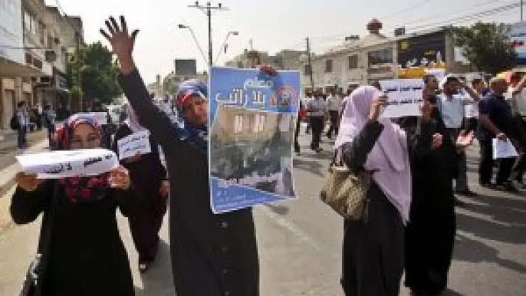 Gazze'de, uzlaşı hükümetinden aylardır maaşını alamayan öğretmenler, 1 günlük iş bırakma eylemi yaptı.