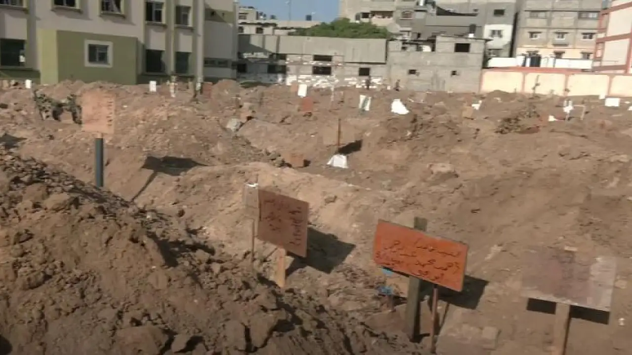 Gazze'nin en büyük hastanesi olan Şifa Hastanesi'nde, 7 bebek ile 29 yoğun bakım hastası dahil 179 kişinin cenazesinin hastane kompleksindeki 'toplu mezara' gömüldü.