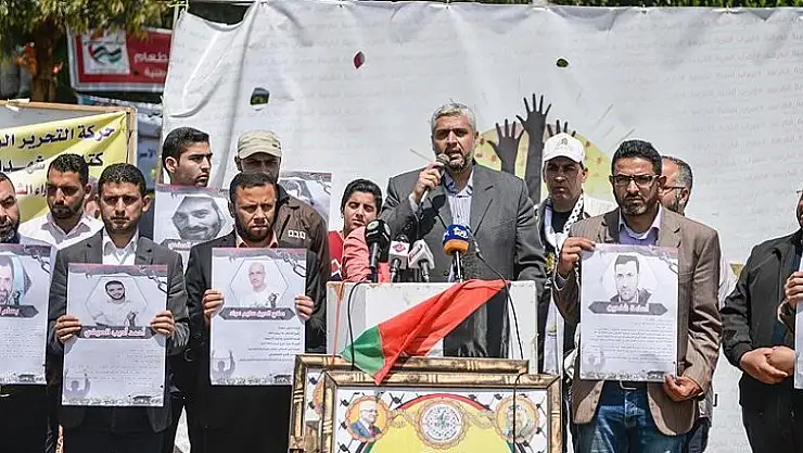 Filistin hükümetine bağlı Enformasyon Ofisi'nin çağrısıyla Gazze'deki Seraya Meydanı'nda toplanan gazeteciler, "Esirlere özgürlük" ve "İsrail hapishanelerinde 26 gazeteci bulunuyor" yazan dövizler taşıdı.