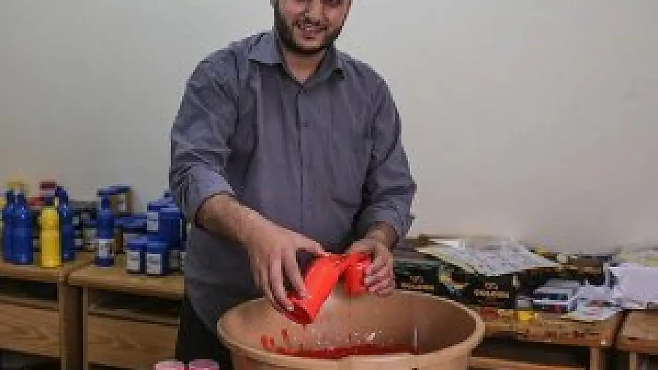 Gazzeli ressam kendi boyasını üretiyor