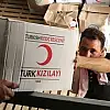 Turkish Cargo'nun Atatürk Havalimanı'ndaki tesislerine getirilen yardımlar, Türk Kızılayı Genel Müdür Yardımcısı Mintez Şimşek tarafından kargo yetkililerine teslim edildi.